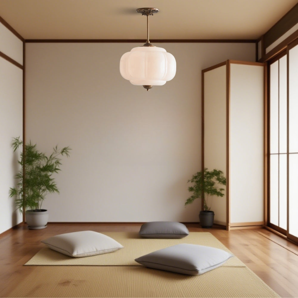 Lampada a sospensione vintage in vetro di latte