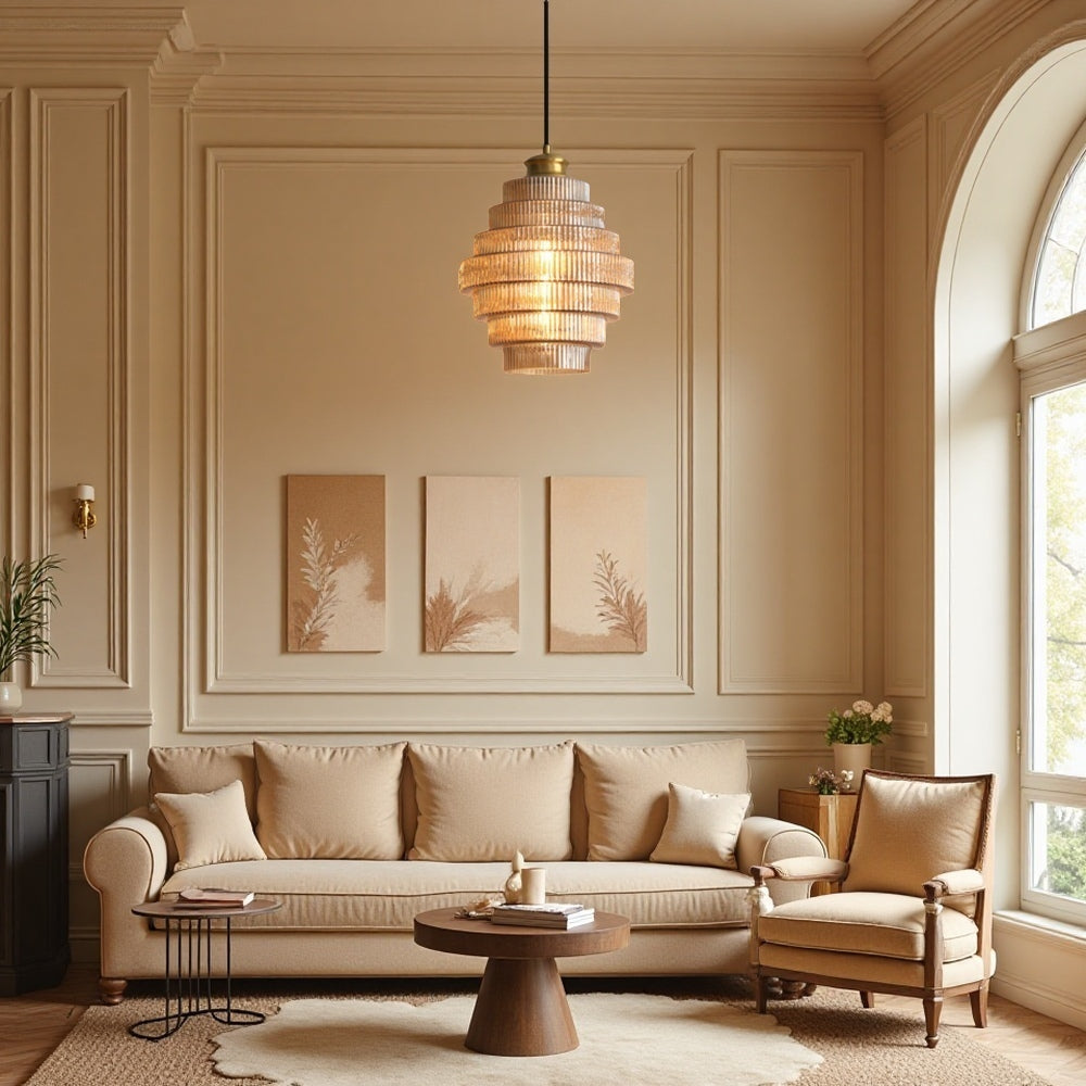 Aggiungi un tocco di fascino classico al tuo soggiorno, alla sala da pranzo o alla camera da letto con questa lampada a sospensione rotonda, splendidamente realizzata. Caratterizzata da un vetro a strisce dal design vintage, diffonde una luce calda e invitante, perfetta per creare un'atmosfera accogliente. La resistente struttura in metallo e il vetro di alta qualità garantiscono un'eleganza duratura, mentre la silhouette di ispirazione retrò si adatta sia agli interni tradizionali che a quelli moderni.